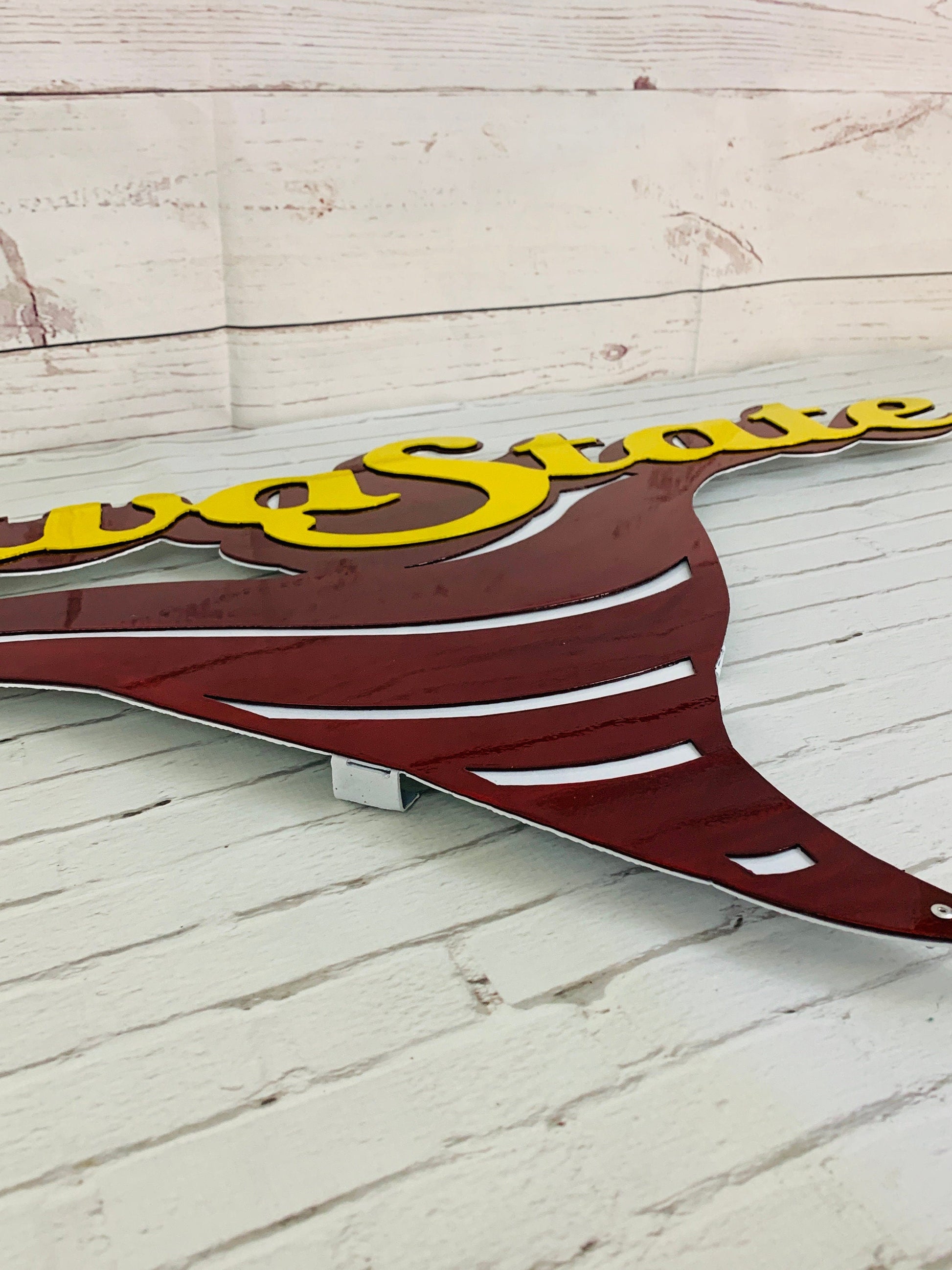 This a 33.5" X 20" or 24" x 14.75" med size option, multi-layered metal sign that is cut out of 10 gauge aluminum.